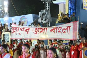 কার্নিভালে বাংলা জিন্দাবাদ পোস্টার মুখোশে থিম বাংলা